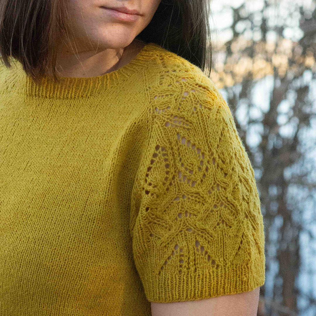 Il top Venilia è lavorato a maglia senza cuciture dall'alto verso il basso, con uno splendido motivo in pizzo sul davanti e sul dietro.
